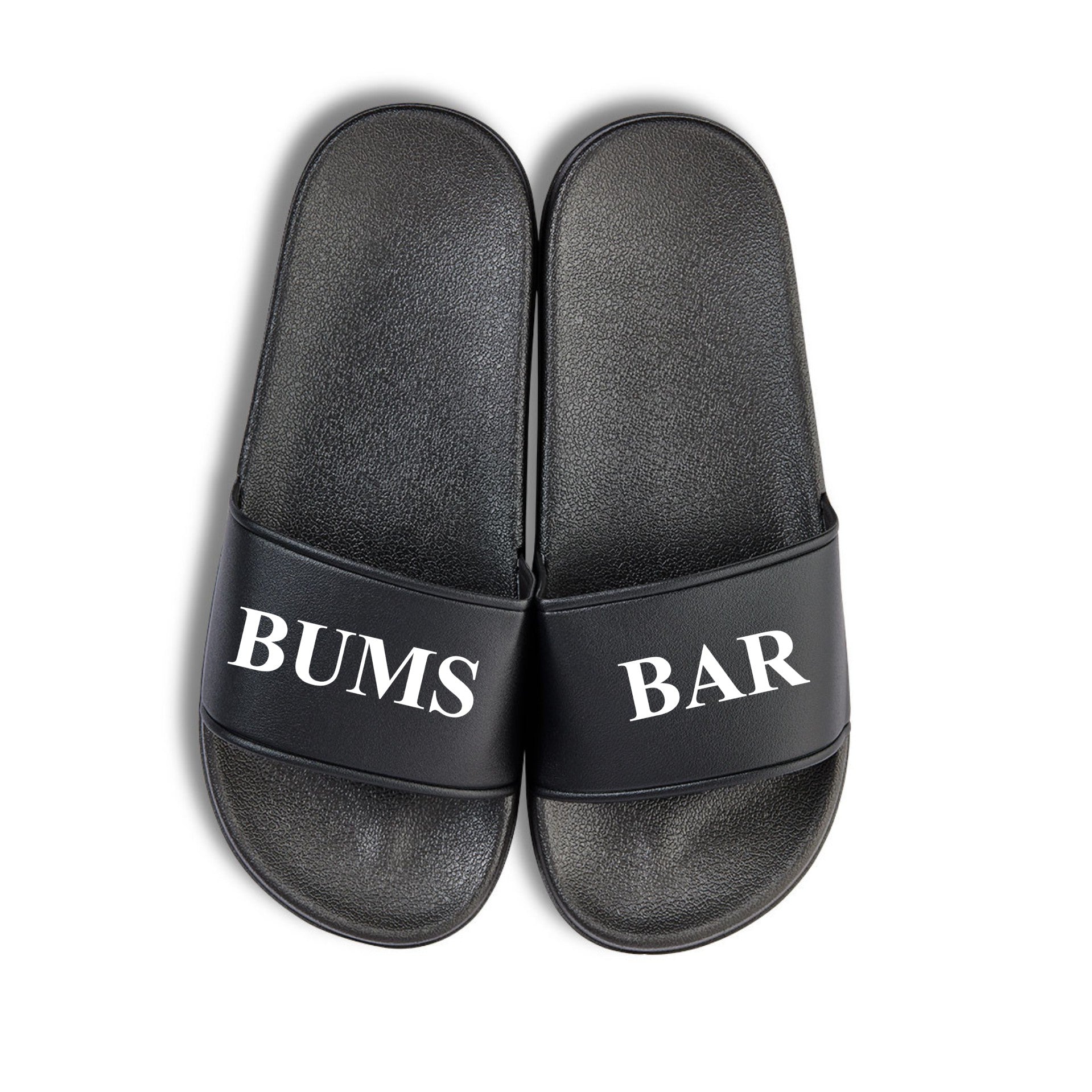 Badelatschen "BUMS BAR", der Hingucker am Strand oder nach dem Sport. Latschen gehen eigentlich immer !!! Zwei verschiedene Farbvarianten und Größen wählbar. Die Badelatschen werden von mir mit einem hochwertigen Druck veredelt.