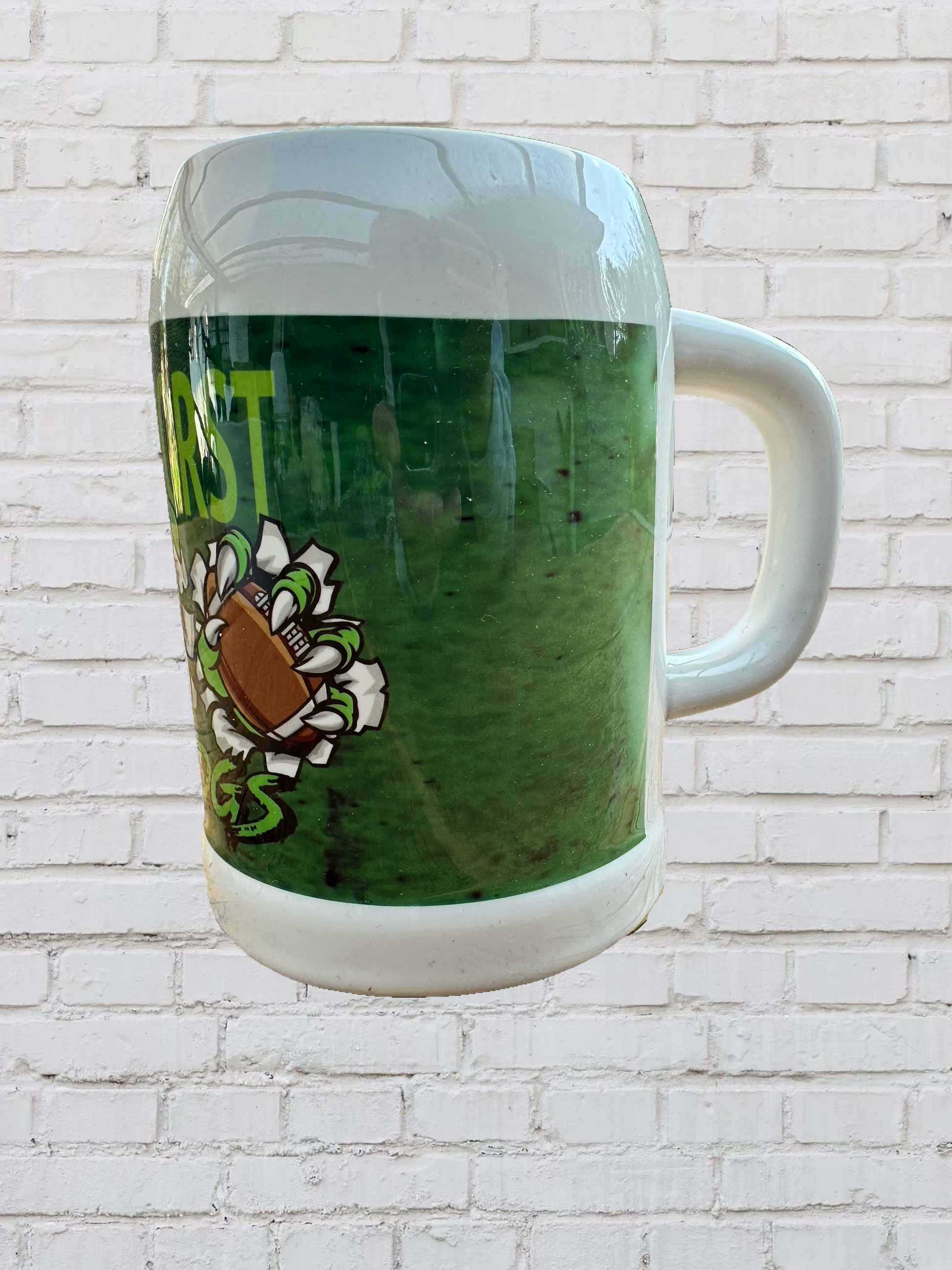 Der Bierkrug Bulldogs Fan ist ein unverzichtbares Accessoire für jeden wahren Fan. Der Bierkrug besteht aus hochwertiger Keramik und verfügt über ein klassisches Design. Der Krug ist mit dem Bulldogs-Logo und den Teamfarben verziert und bietet ein großzügiges Fassungsvermögen von etwa 500 ml, was ausreichend Platz für ein erfrischendes Bier bietet. Der Krug hat einen robusten Henkel, der einen sicheren Griff ermöglicht und auch ein bequemes Halten während des Trinkens gewährleistet. Der Bierkrug Bulldogs Fan eignet sich perfekt als Geschenk für jeden Bulldogs-Fan und ist ideal für gemeinsame Stunden beim Public Viewing, im Stadion oder auch einfach nur zuhause beim Footballgame.