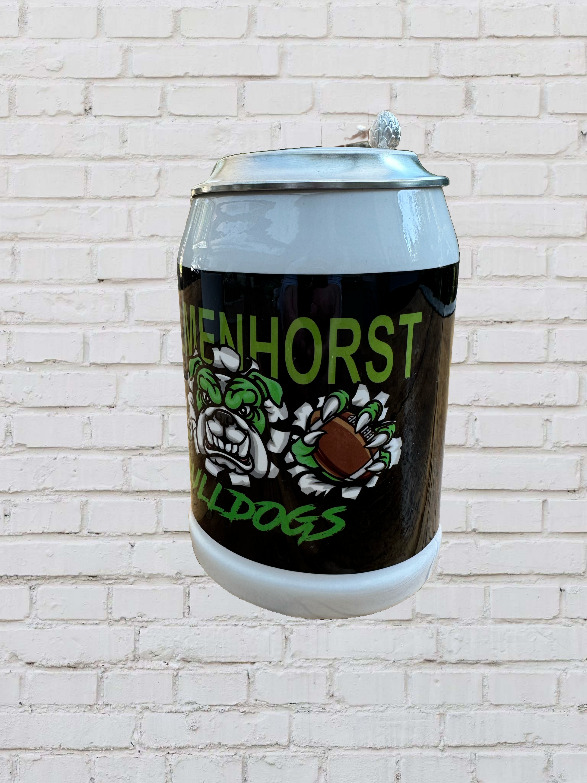 Bulldogs Bierkrug mit Zinndeckel