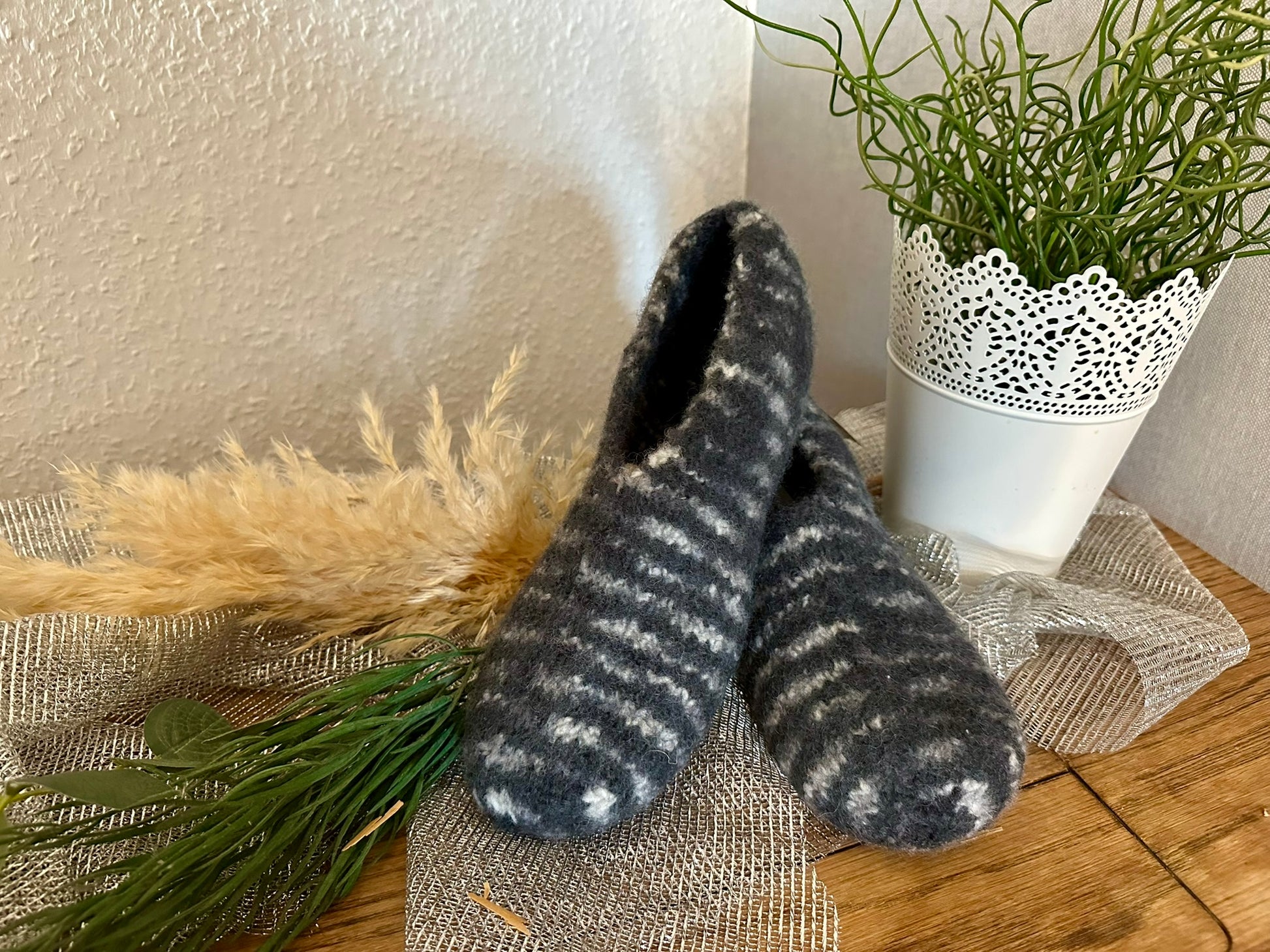 Filzpuschen in dunkelgrau meliert in den Größen 36-48
