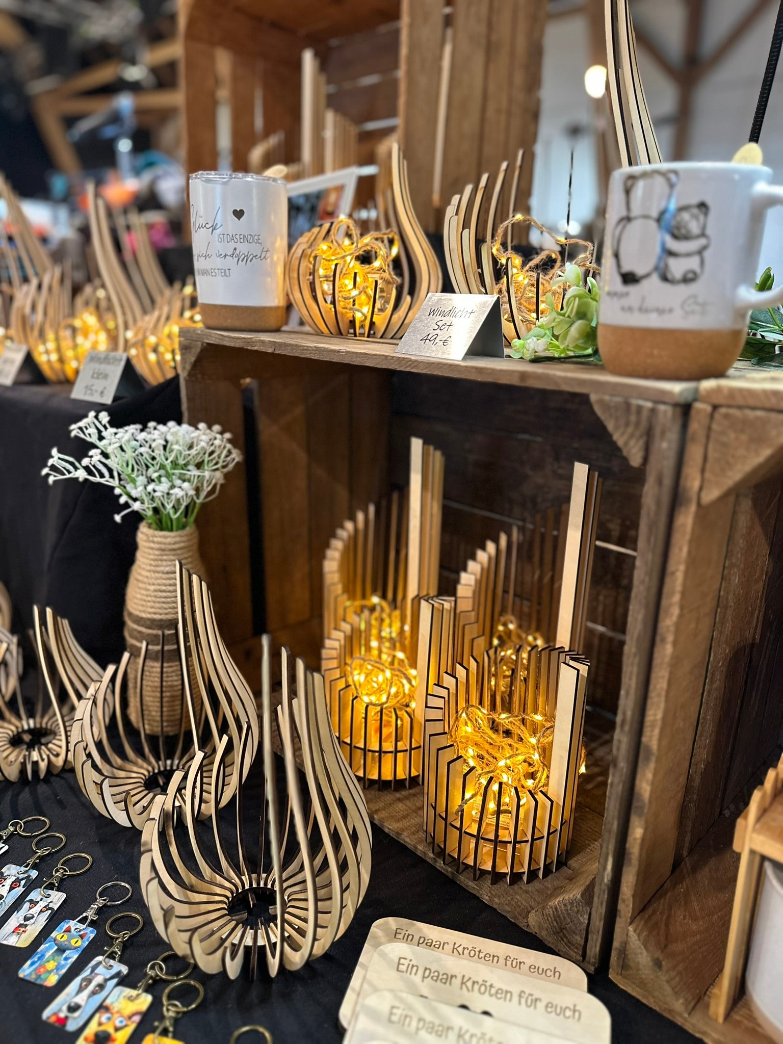 Die im ersten Bild zu sehende Lichterkette ist im Lieferumfang enthalten (ohne Batterien)