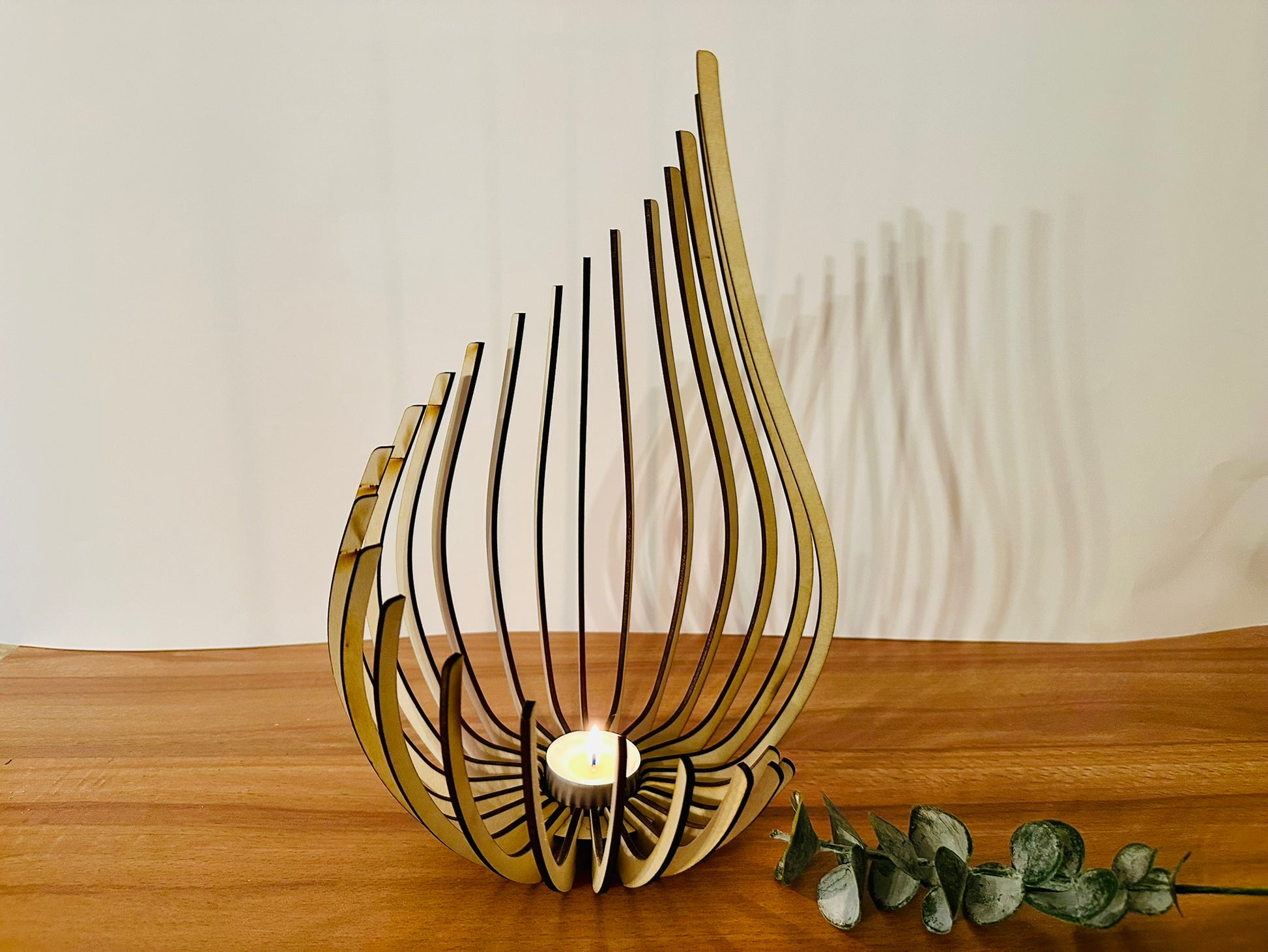 Gelasertes Windlicht in drei verschiedenen Größen, geschwungene Form