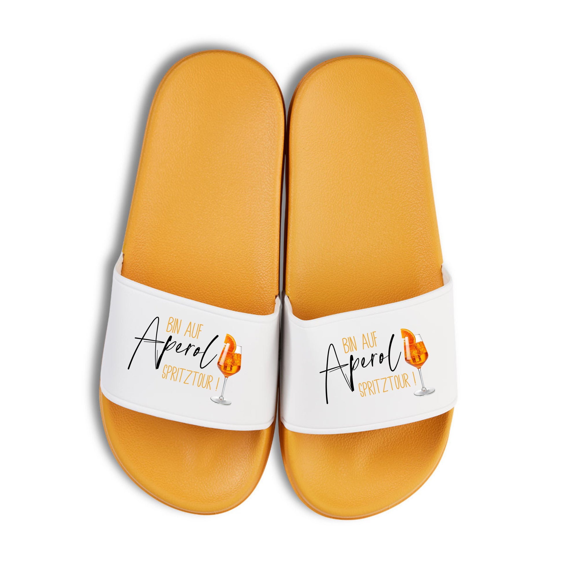 Badelatschen "bin auf Aperol Spritztour" Aperoletten in gelb