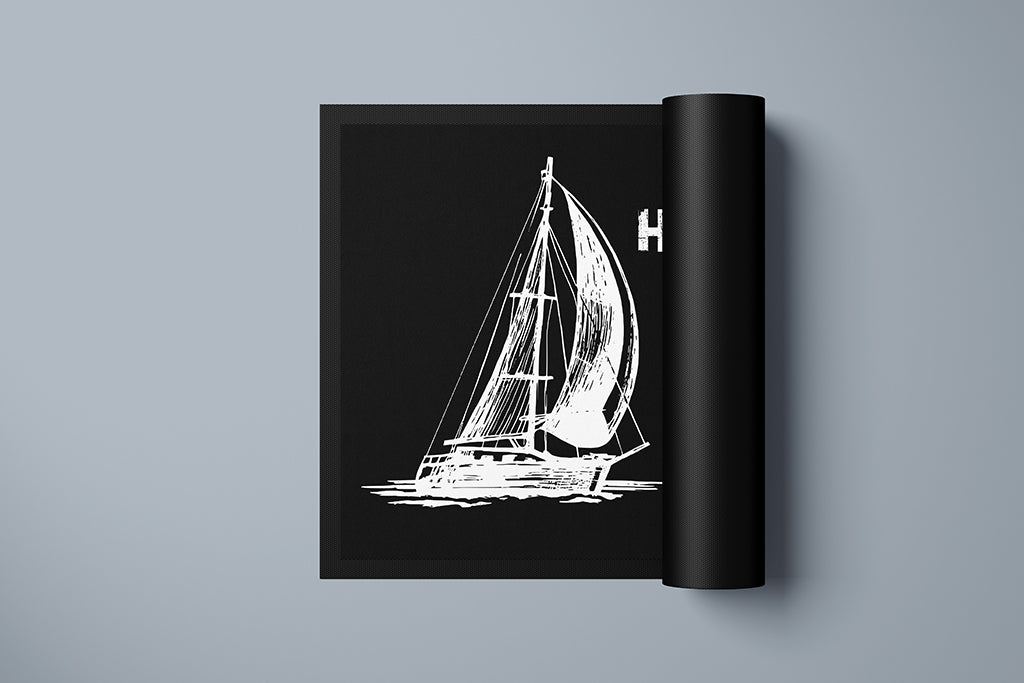 Fussmatte "Heimathafen" in zwei Größen mit Segelschiff personalisierbar
